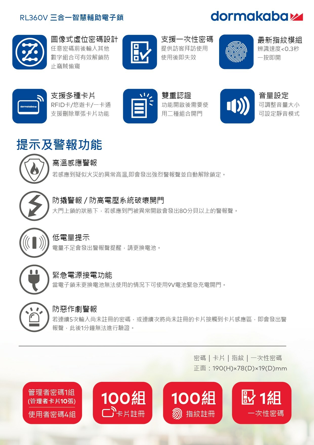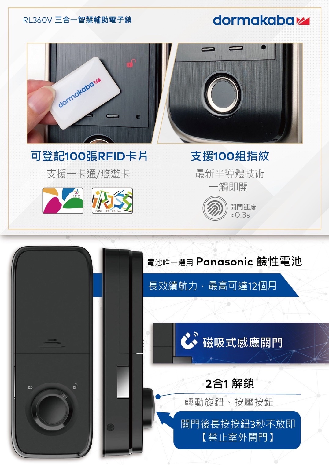 Dormakaba RL360V指紋 卡片 密碼